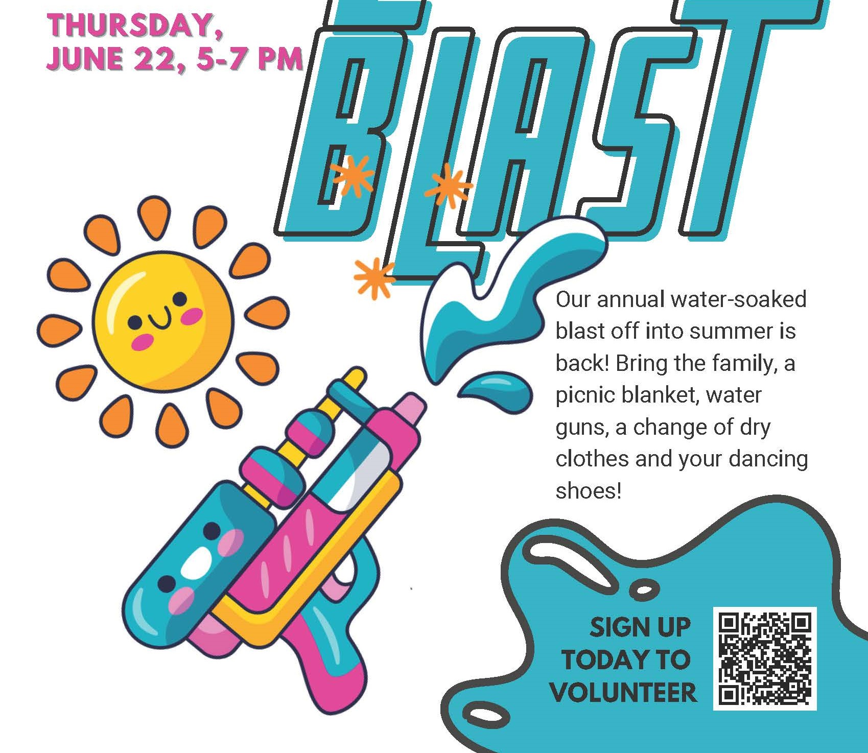 Join us for Last Blast on Thursday June 19 from 5-7pm. William Reid's annual water-soaked blast off into summer is back! Bring the family, picnic gear, water guns, a change of dry clothes and your dancing shoes! See the attached poster for details. Events like these are made possible by parent volunteers - please sign up here to help out!